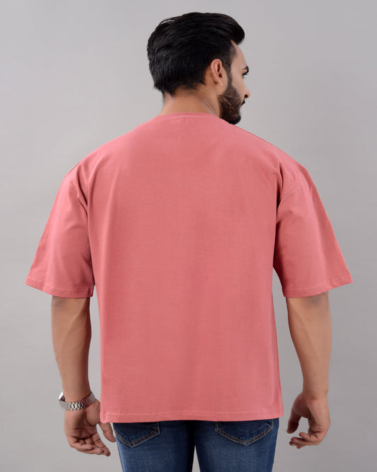 Cotton Blend Oversize Loose Fit Drop Shoulder Round Neck Half Sleeve Typography Peach T-Shirt for Men (SIZE- M,L,XL,XXL)
