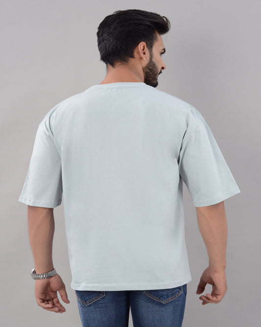 Cotton Blend Oversize Loose Fit Drop Shoulder Round Neck Half Sleeve Typography Turquiose T-Shirt for Men (SIZE- M,L,XL,XXL)