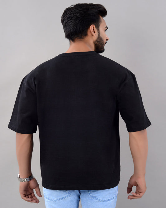 Cotton Blend Oversize Loose Fit Drop Shoulder Round Neck Half Sleeve Typography Black T-Shirt for Men (SIZE- M,L,XL,XXL)