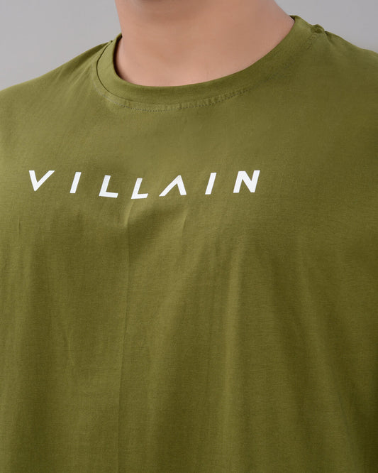 Cotton Blend Oversize Loose Fit Drop Shoulder Round Neck Half Sleeve Typography Olive T-Shirt for Men (SIZE- M,L,XL,XXL)