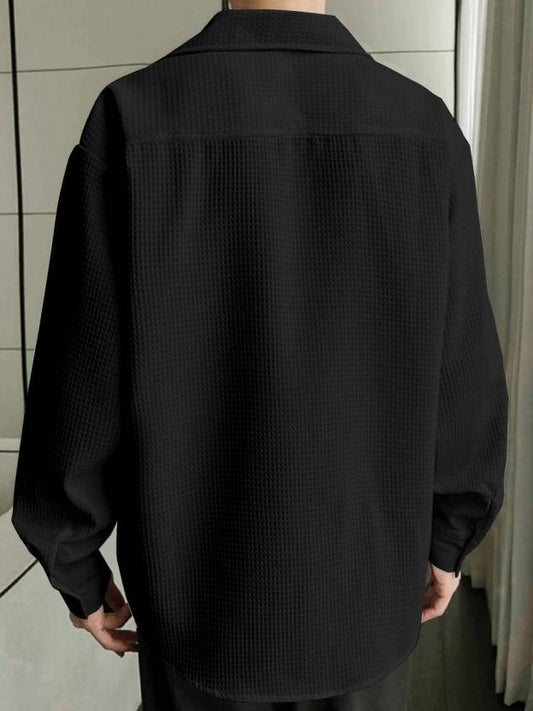 Men Regular Fit Checkered Ribbed Collar Casual Shirt