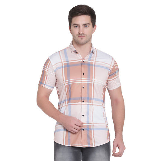 Men Regular Fit Checkered Spread Collar Casual Shirt