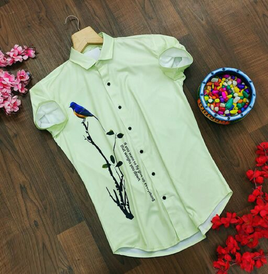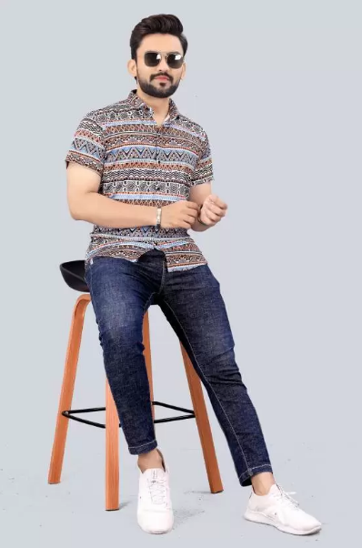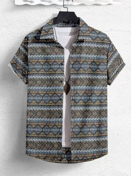 Men Regular Fit Printed Ribbed Collar Casual Shirt