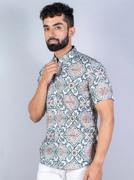 Men Regular Fit Printed Spread Collar Casual Shirt