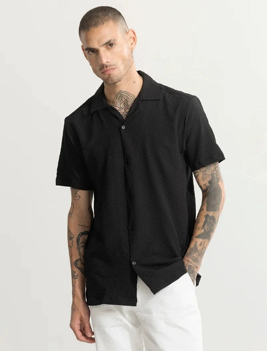 Men Regular Fit Self Design Club Collar Casual Shirt