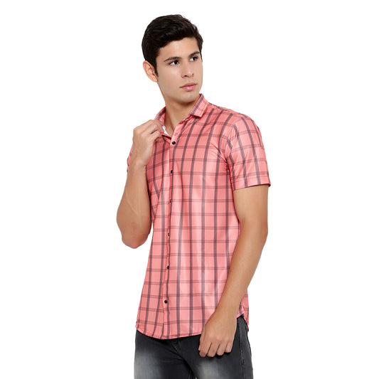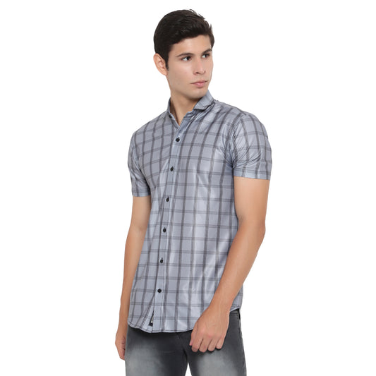 Men Regular, Slim Fit Checkered Ribbed Collar Casual Shirt