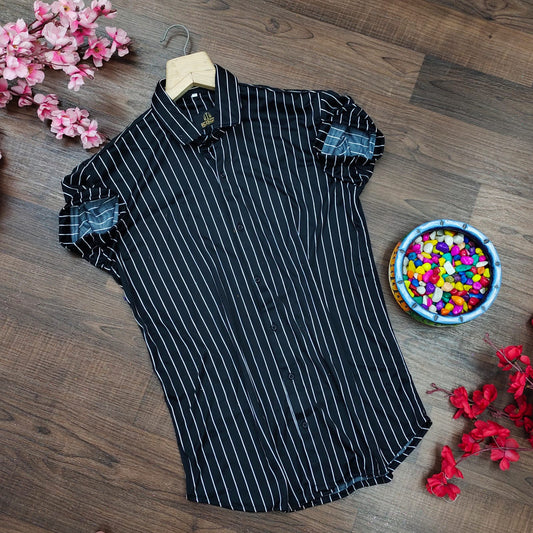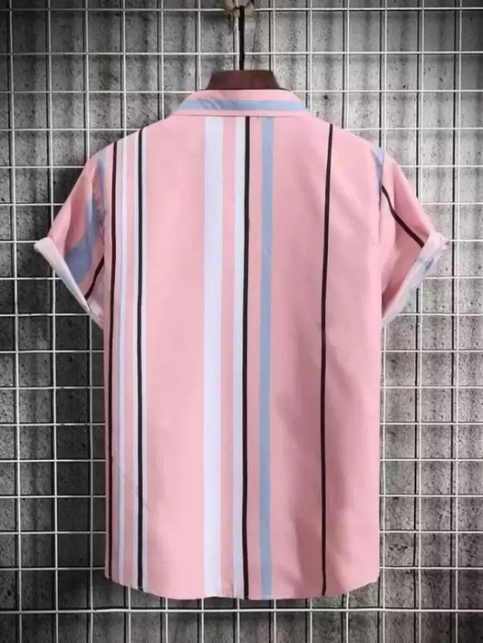 Men Regular Fit Striped Ribbed Collar Casual Shirt