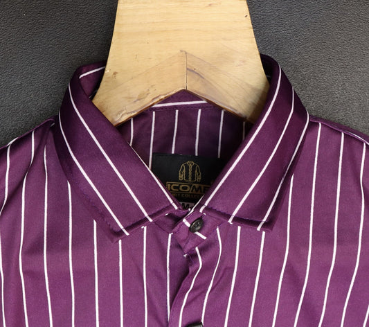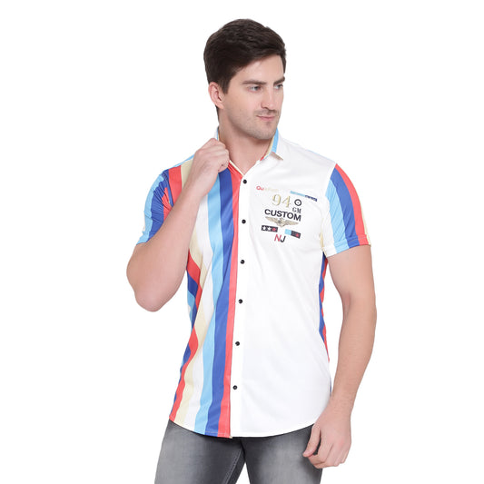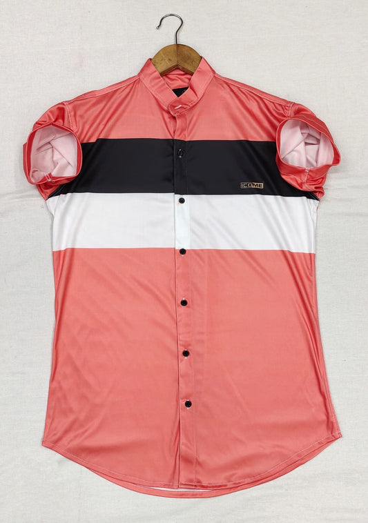 Men Regular Fit Striped Ribbed Collar Party Shirt
