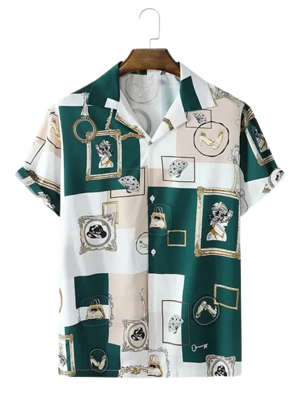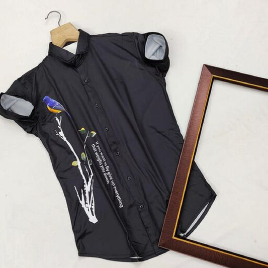 Men Regular, Super Slim Fit Graphic Print Lapel Collar Casual Shirt