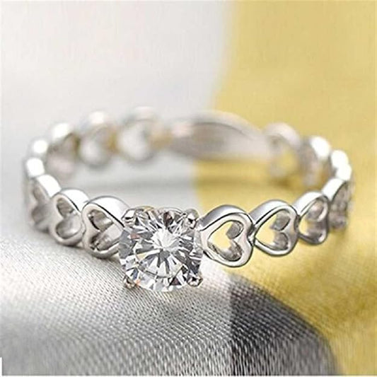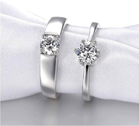 Stainless Steel Silver Plated Zirconia Studded Couple Rings