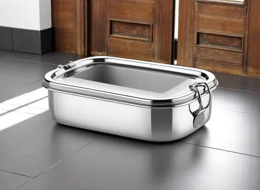 Stainless Steel Plain Blue with Silver Color Lunch Box