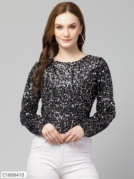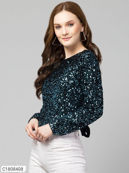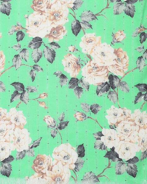 Women Green & Cream-Coloured Sequins Floral Printed Scarf