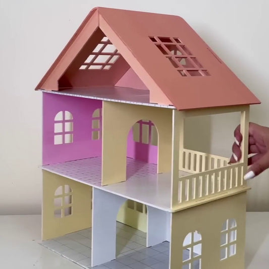 Wooden Toy House with Furniture for Kids (Free Paint Set)