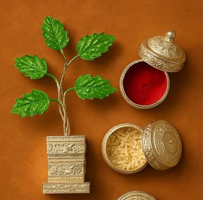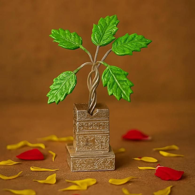 German Silver Plated Tulsi Plant Decorative Showpiece (4inche)